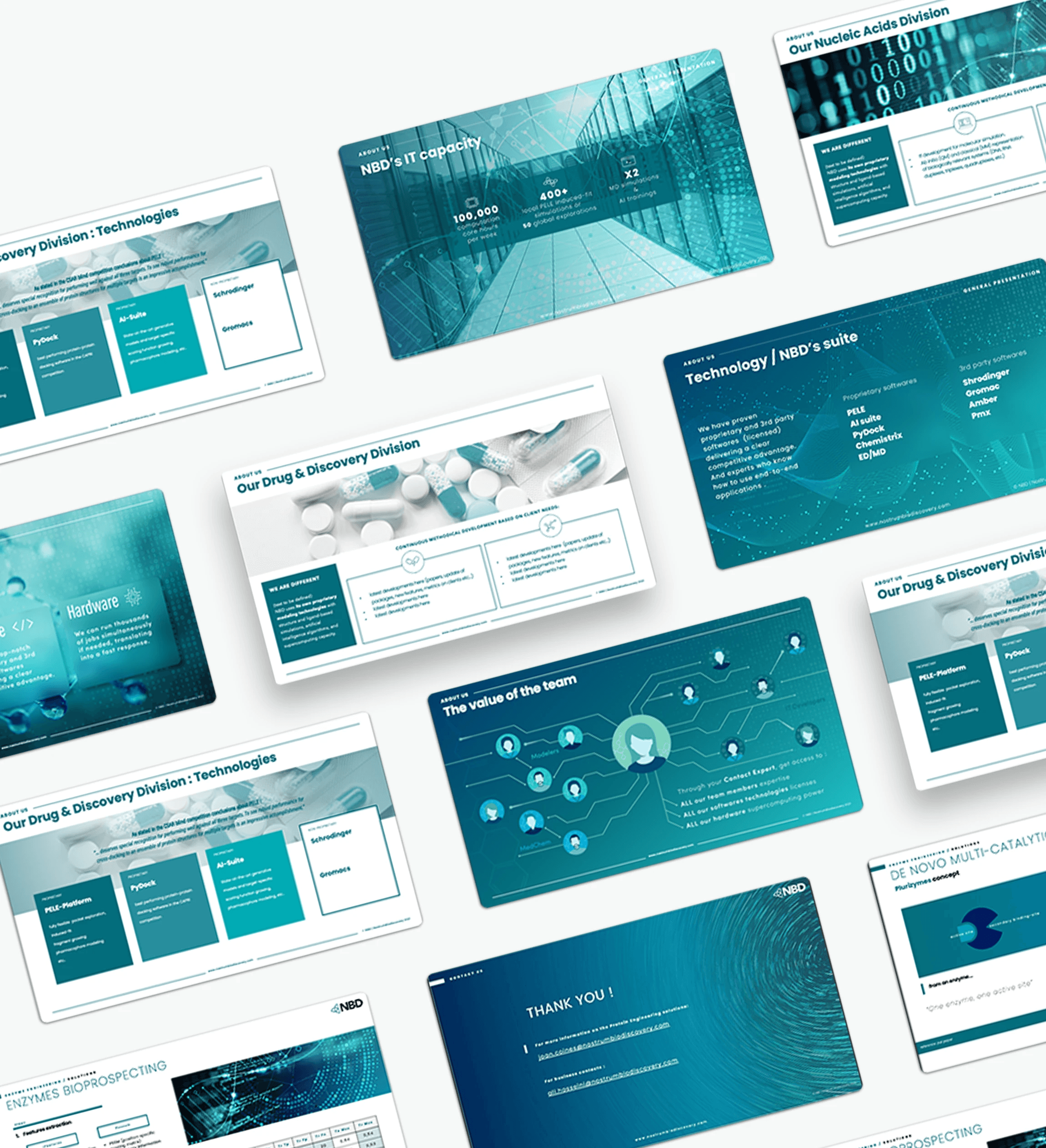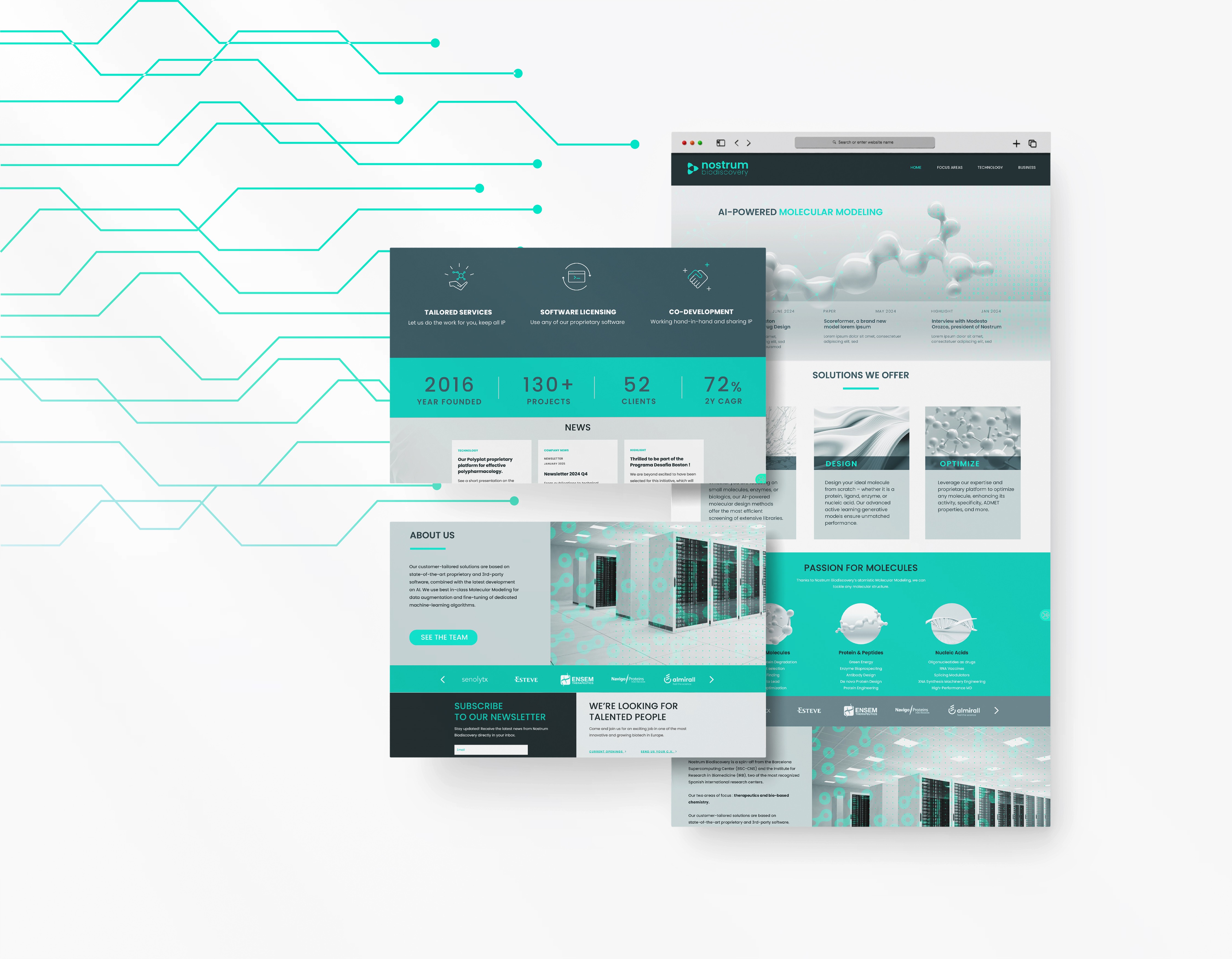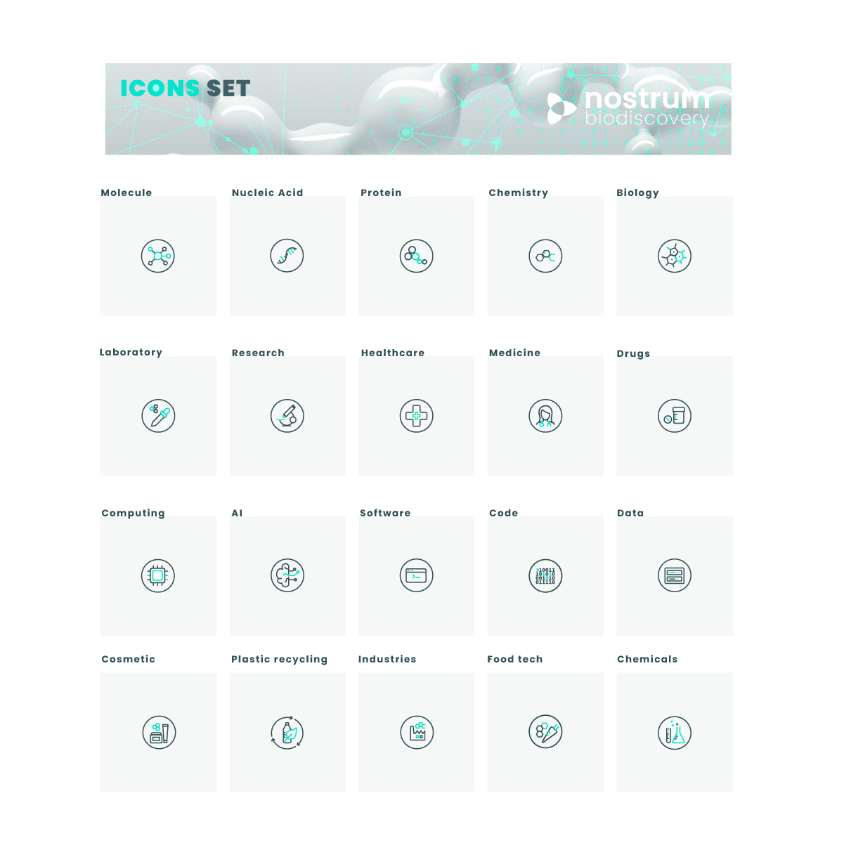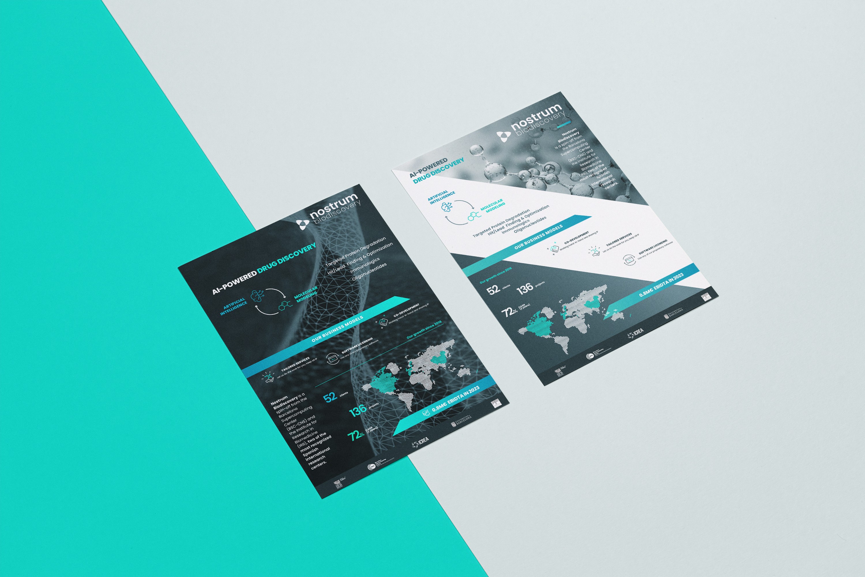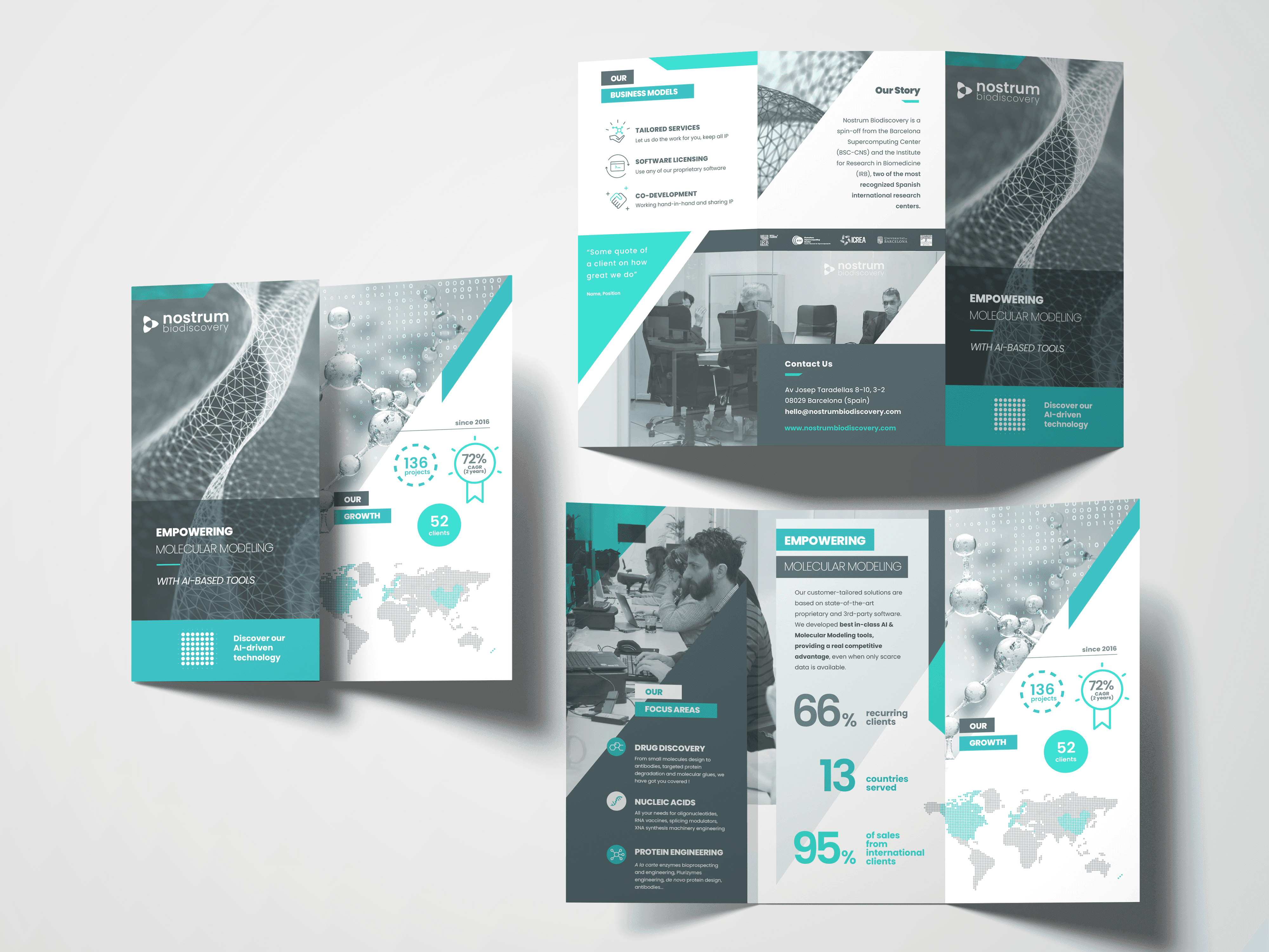 Nostrum Biodiscovery is a computational drug discovery start-up at the forefront of molecular design. As their Head of Visual Communication for three years, I was responsible for redefining the company’s brand identity and ensuring visual consistency across all channels. From evolving the logo to designing brochures, technical documentation, and investor materials, I built a communication system that combined scientific clarity with professional credibility.